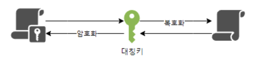 특징 : 암호화, 복호화 하는 키가 같다.