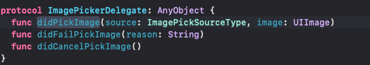 5. 이제 다른곳에서 사용할 수 있게 ImagePicker에 대한 Delegate를 만들어 줍니다.