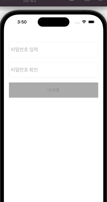 메인 화면 위 화면에서 상단 텍스트 필드와 하단 텍스트 필드의 텍스트가 같으면 아래 "내 버튼"을 활성화 시켜줄꺼다.
