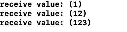 해당 구독을 하고 앱을 실행해서 123을 순차적으로 입력해 로그를 보면 아래와 같습니다.