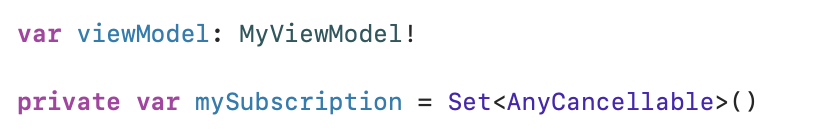 mySubscription = Set<AnyCancelable>()은 Subscribe를 취소 할때 사용할 겁니다.