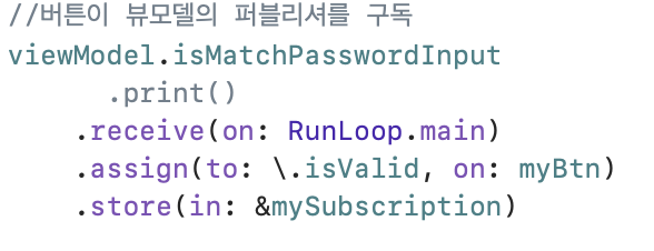 위와 같이 extension을 만들어주고 ViewdidLoad에 subscriber를 만들어 줍니다.